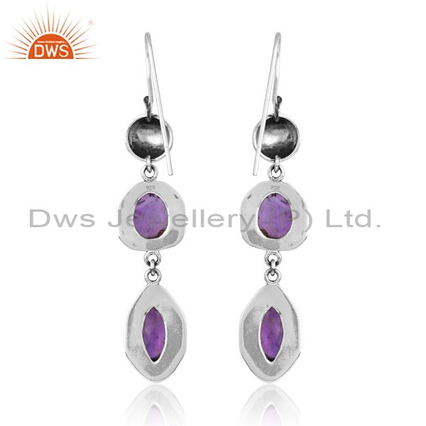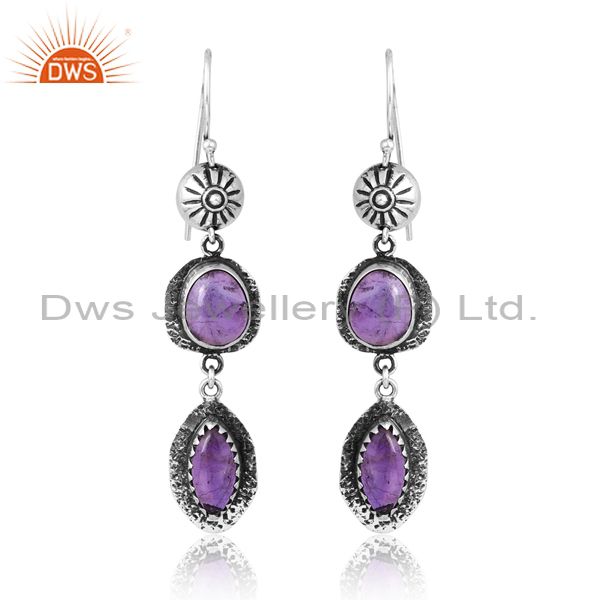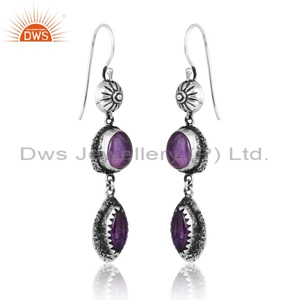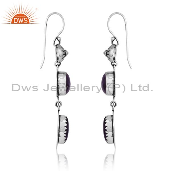 Sterling Silver Oxidized Earrings With Amethyst Cabochon