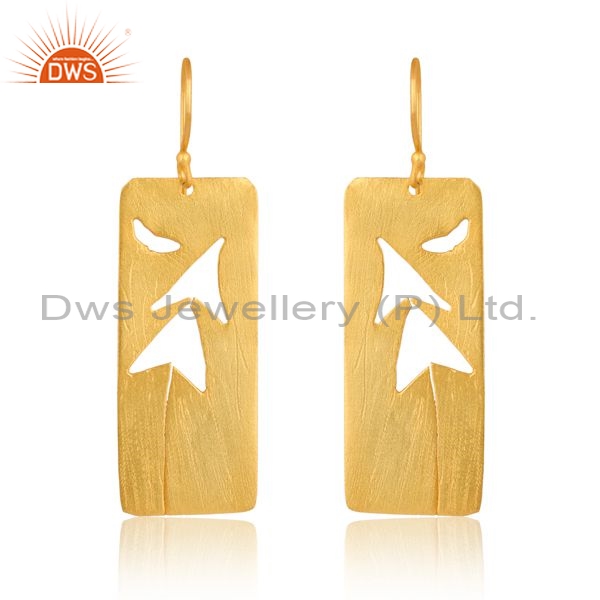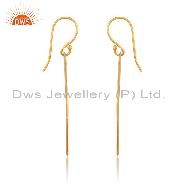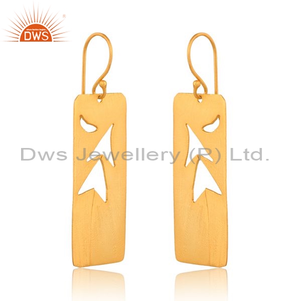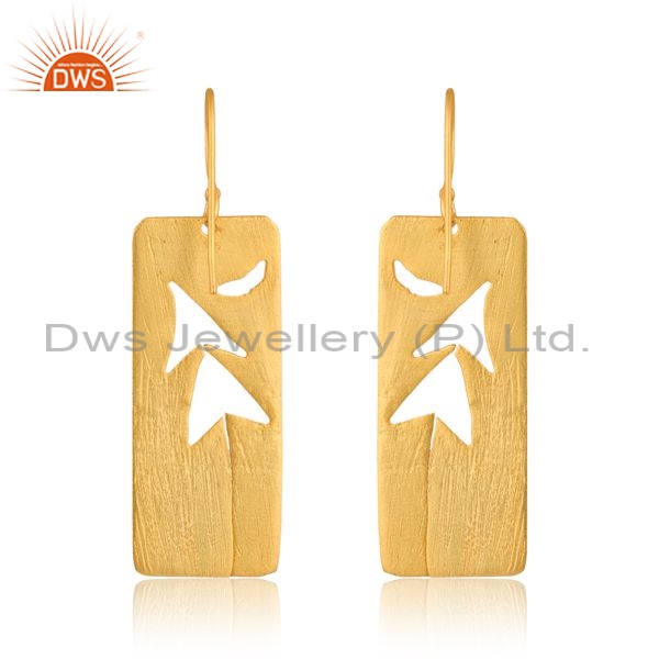 Sterling Silver Recrangle Shaped 18K Gold Drop Earrings