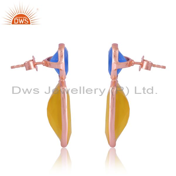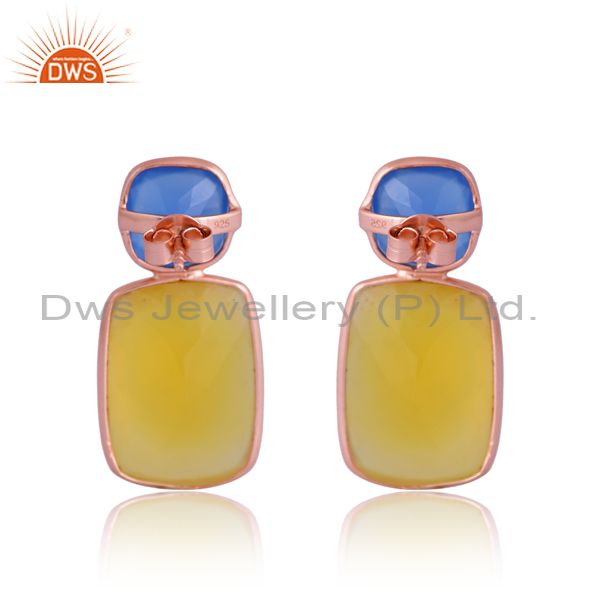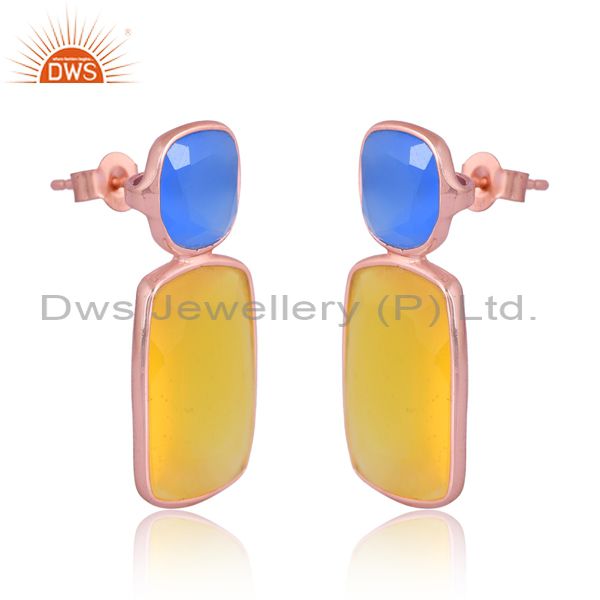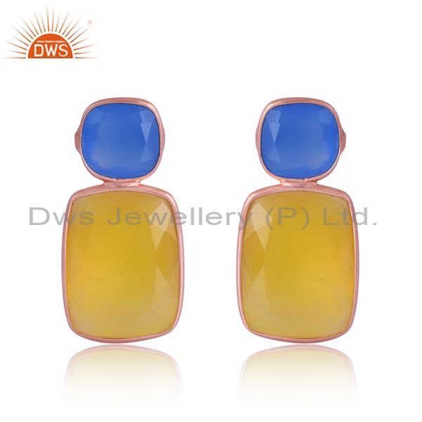 Sterling Silver Rose Earring With Blue And Yellow Chalcedony
