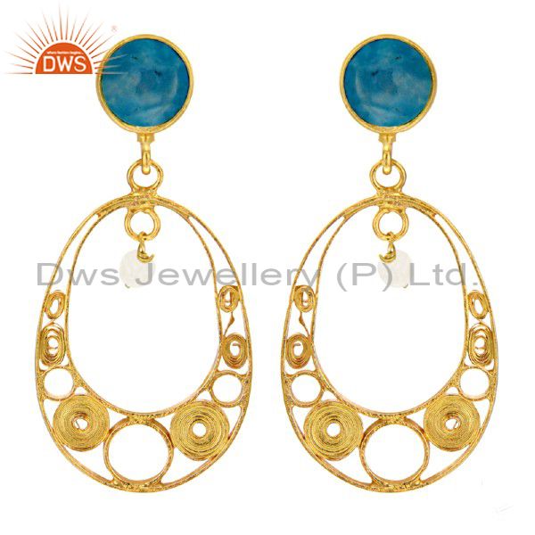 Sterling Silver Spiral Wire Hammered Matte Finish Pearl Turquoise Earring Jewelr