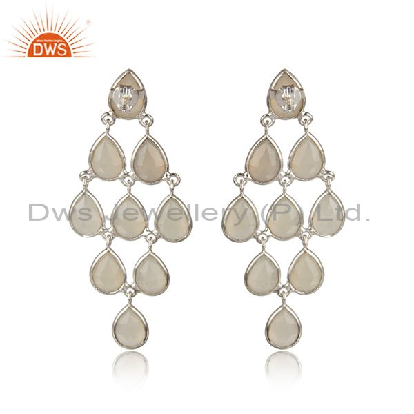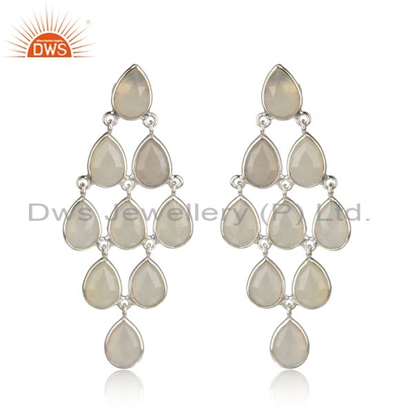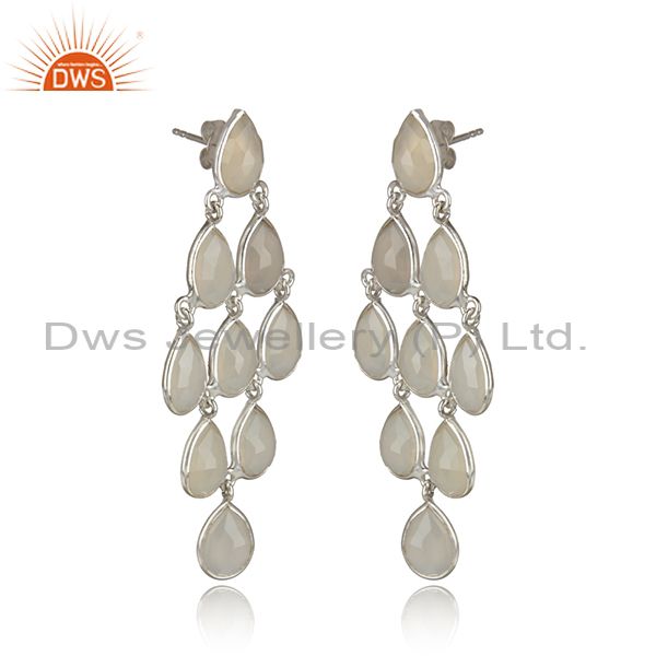Sterling Silver White Chalcedony Gemstone Designer Earrings