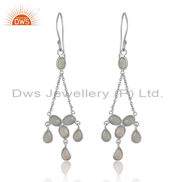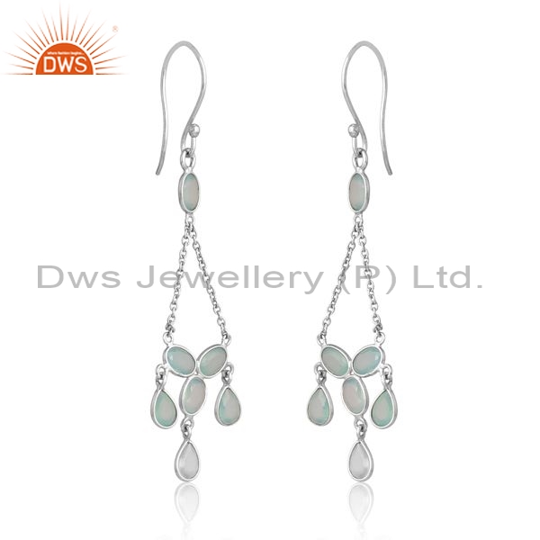 Sterling Silver White Drops With Aqua Chalcedony