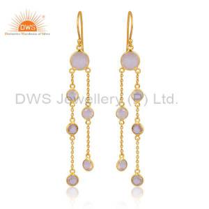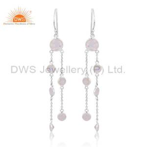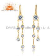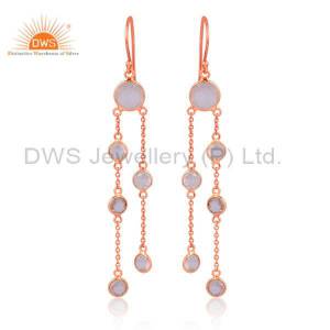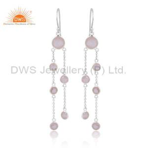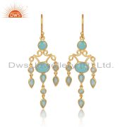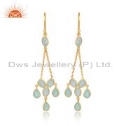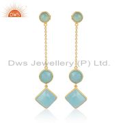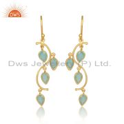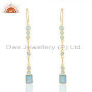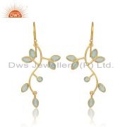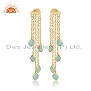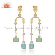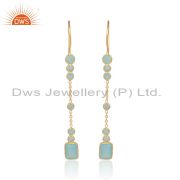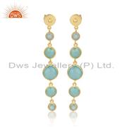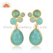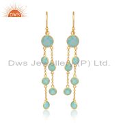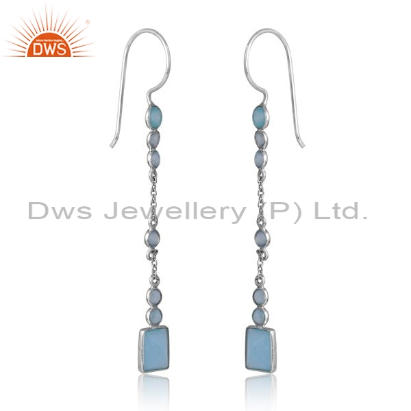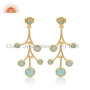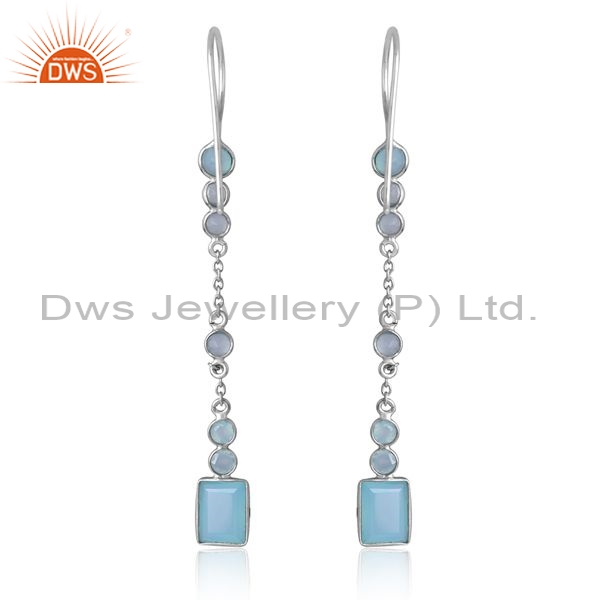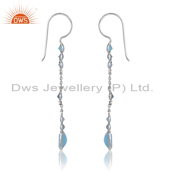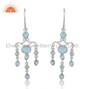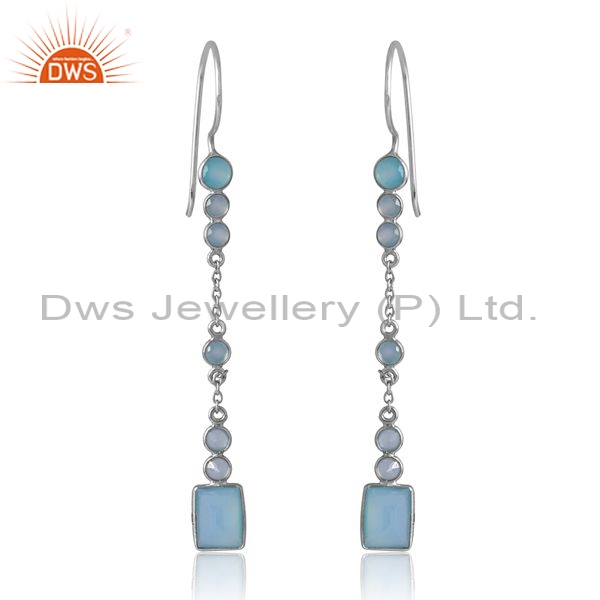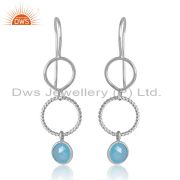 Sterling Silver White Drops With Aqua Chalcedony Round Cut