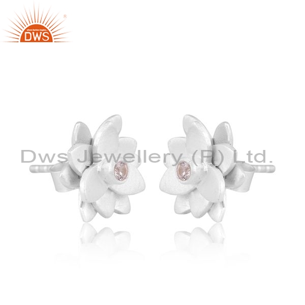 Sterling Silver White Earrings With Cubic Zirconia Round Cut