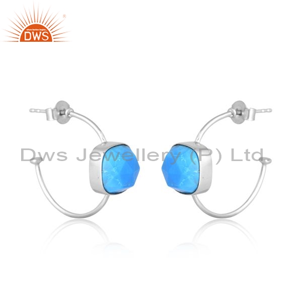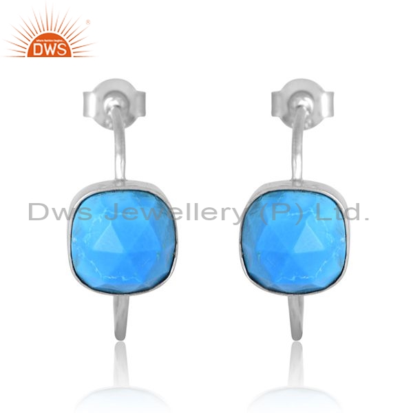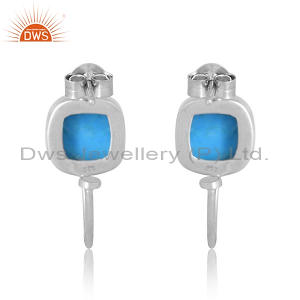 Sterling Silver White Earrings With Turquoise Cultured Stone