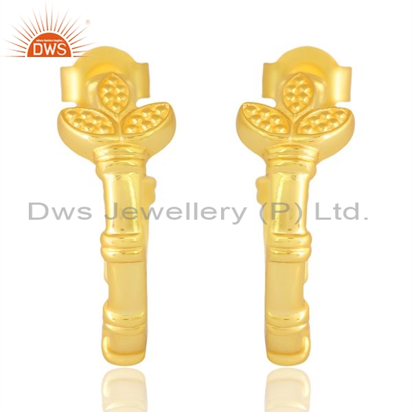Sterling Silver White Gold 18K Leaf Model Earrings
