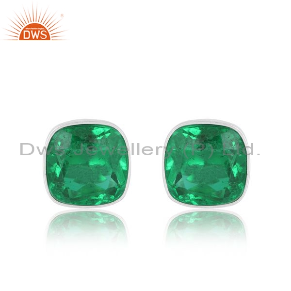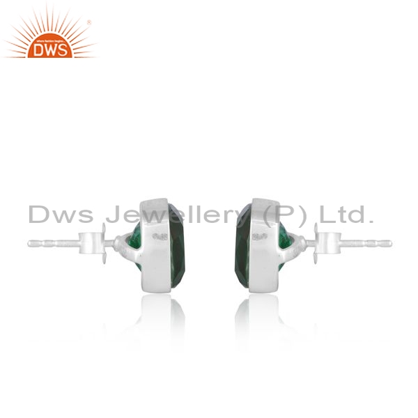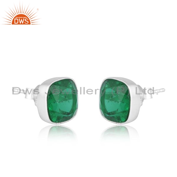 Sterling Silver White Stud With Emerald Zambian Quartz