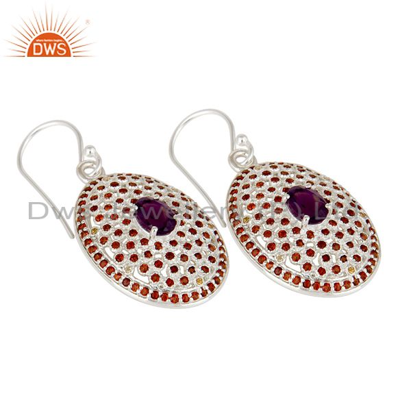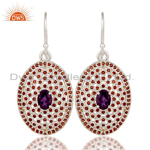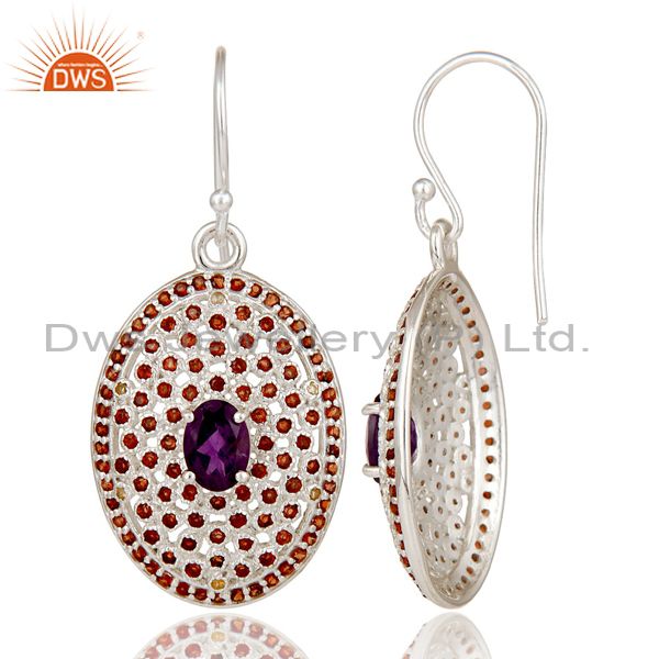 Sterling Solid Silver Amethyst, and Garnet Gemstone Designer Dangler Earring