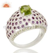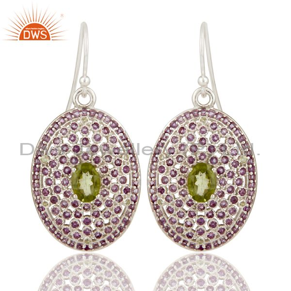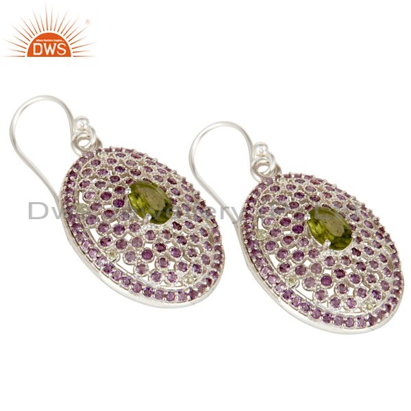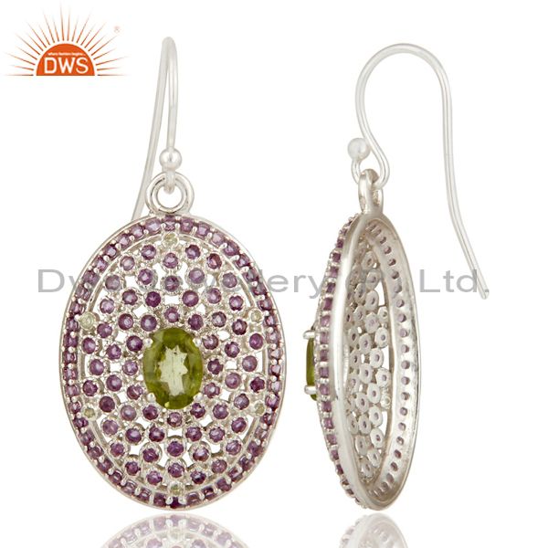 Sterling Solid Silver Amethyst and Peridot Gemstone Designer Dangler Earring