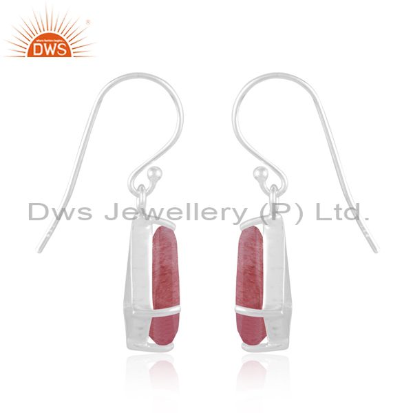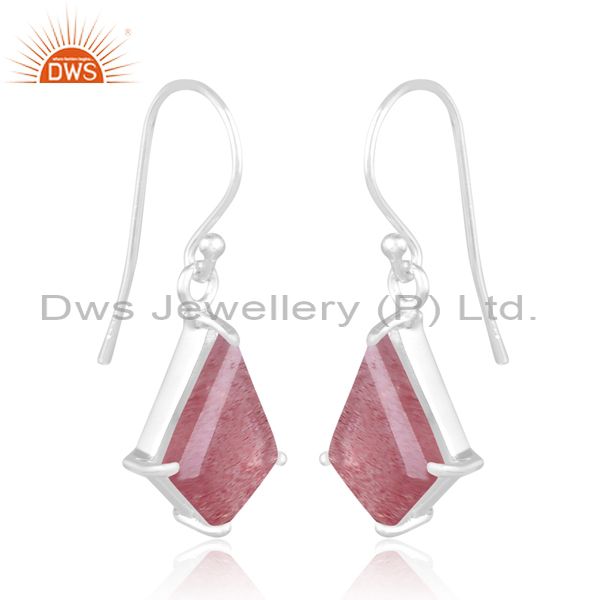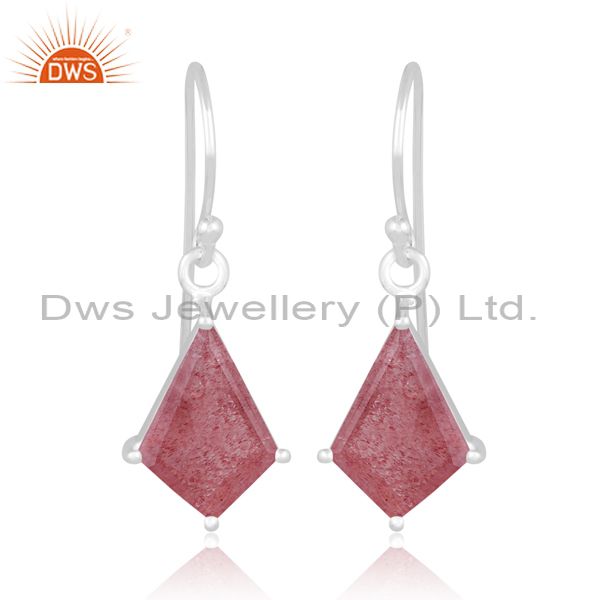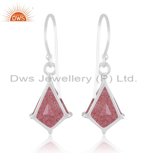 Strawberry Quartz Set Fine Silver Kite Style Long Earrings