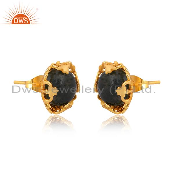 Stunning Moss Agate Engagement Studs - Gold Plated