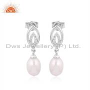 Stunning Pink Pearl And Cubic Zirconia Silver Earrings