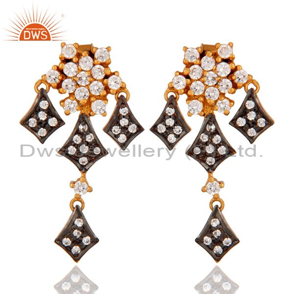 Stunning White Color Cubic Zirconia Cz 925 Sterling Silver Chandelier Earrings
