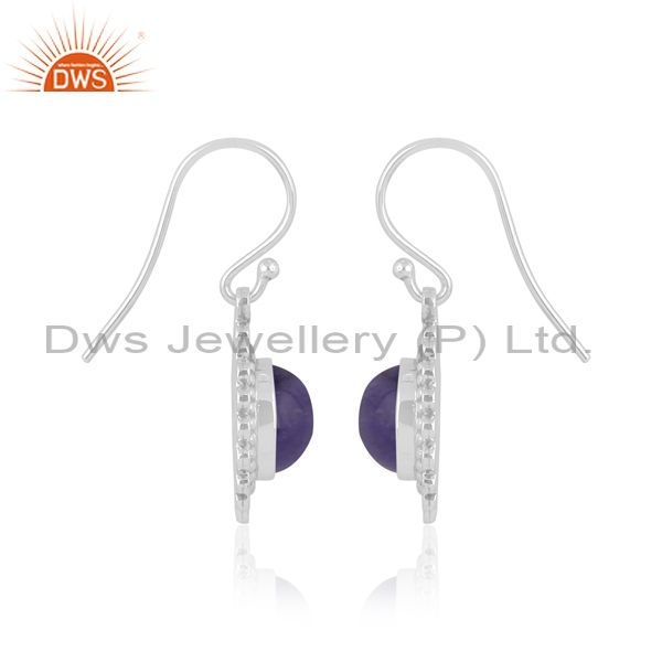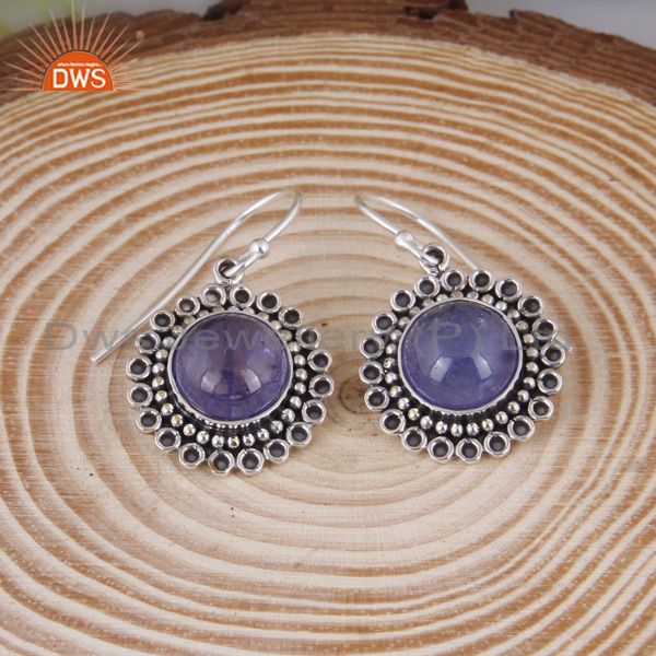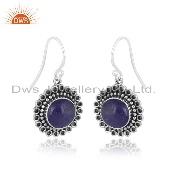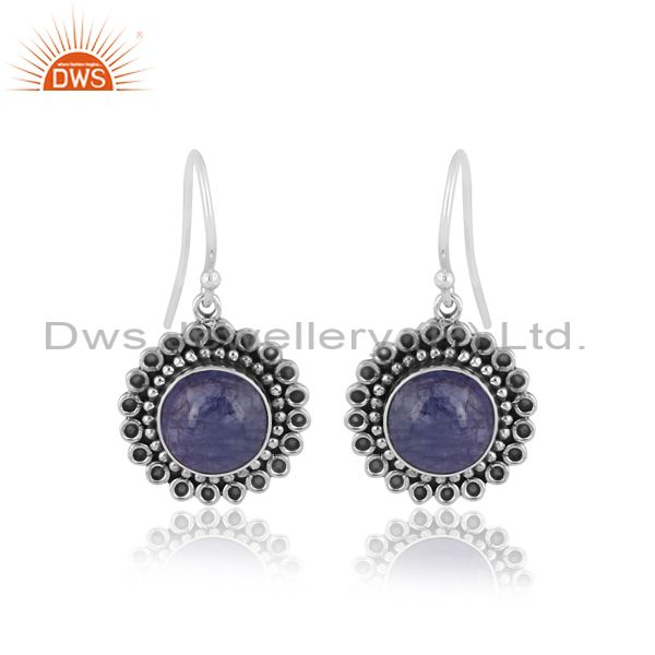 Tanzanite Set Fine 925 Oxidized Silver Floral Round Earrings