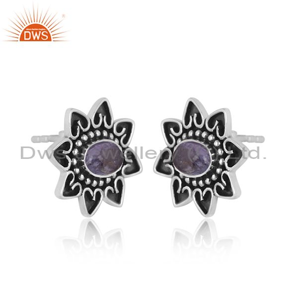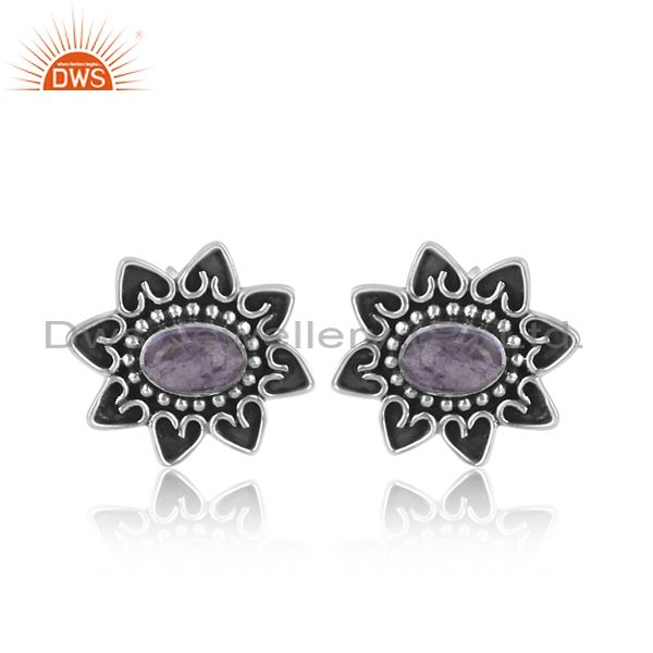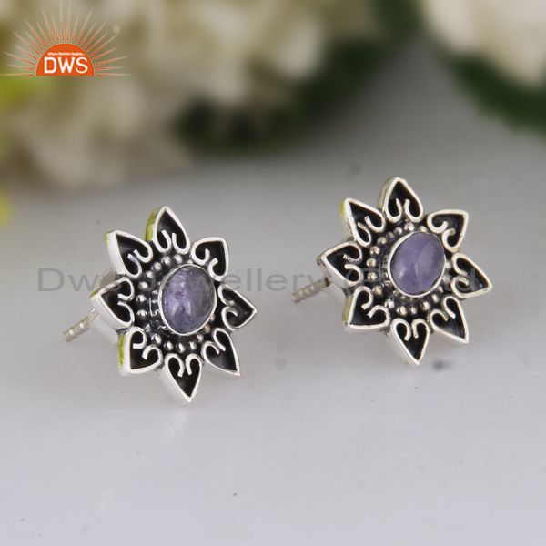 Tanzanite Set Oxidized Silver Star Shaped Designer Earrings