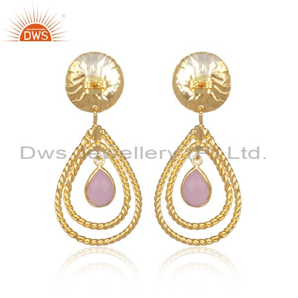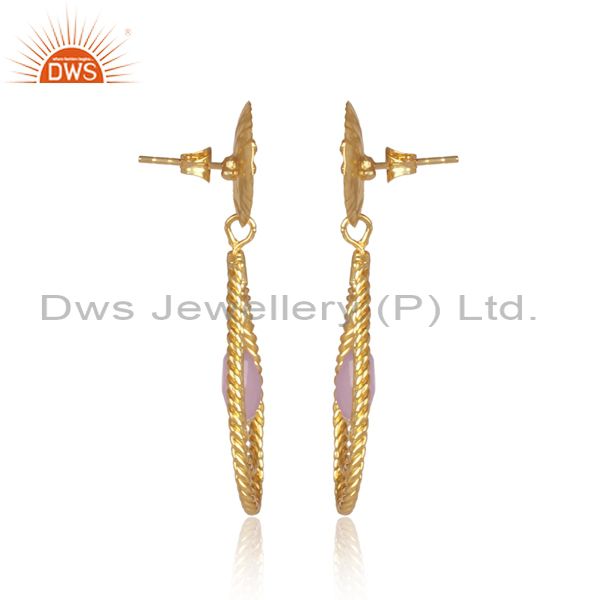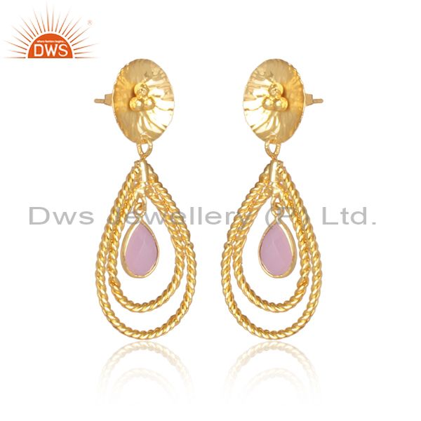 Tear Drop Shape Glass Rose Set Oval Hoop Brass Gold Earrings