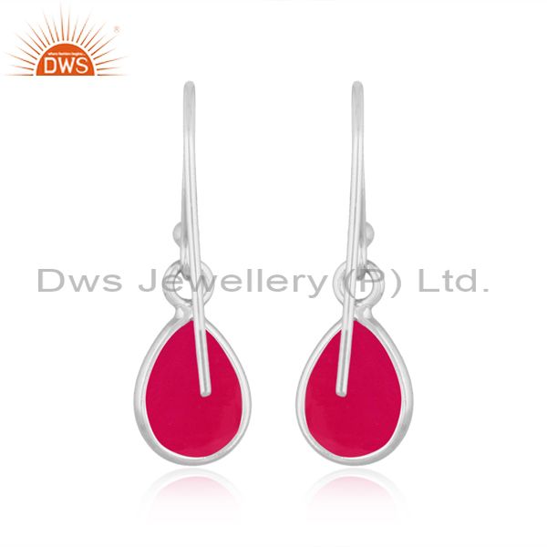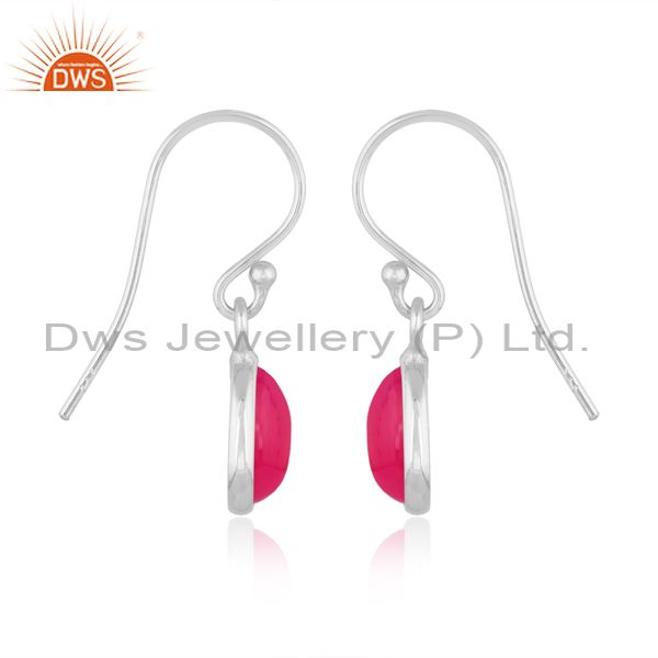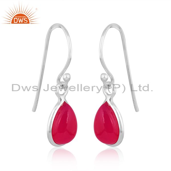 Teardrop Pink Chalcedony Set Sterling Silver Dangle Earring