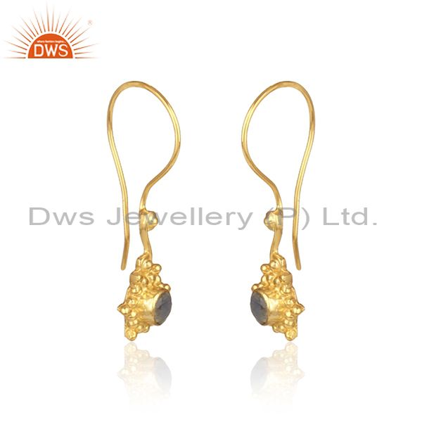 Texture Dangle Earring in Yellow Gold on Silver with Labradorite