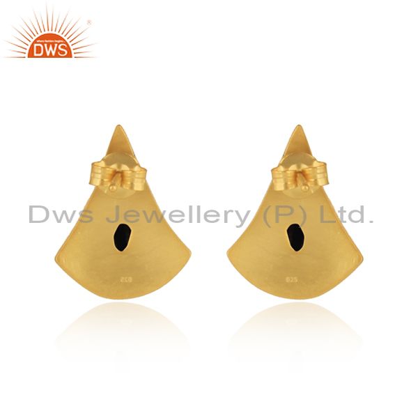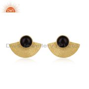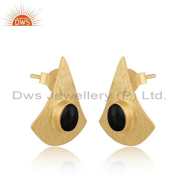 Texture Design Gold On Silver 925 Black Onyx Earrings
