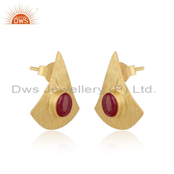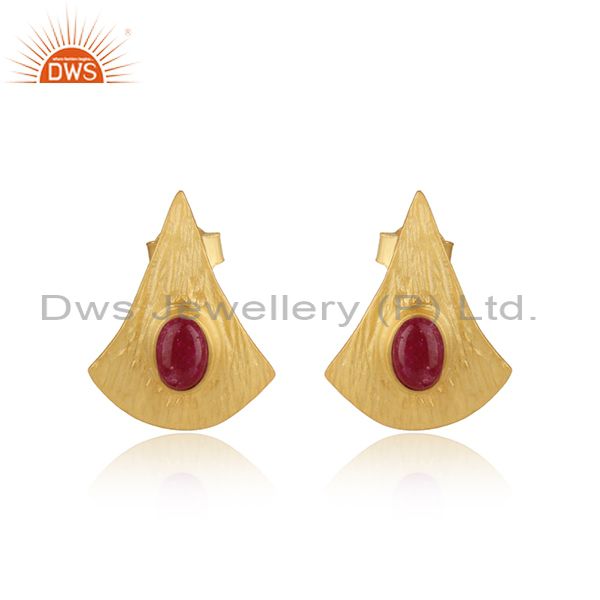 Texture Design Gold On Silver 925 Dyed Ruby Earrings