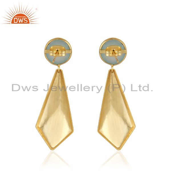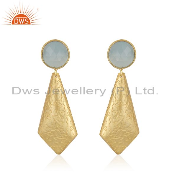 Texture Gold Plated Brass Aqua Chalcedony Gemstone Earrings Jewelry