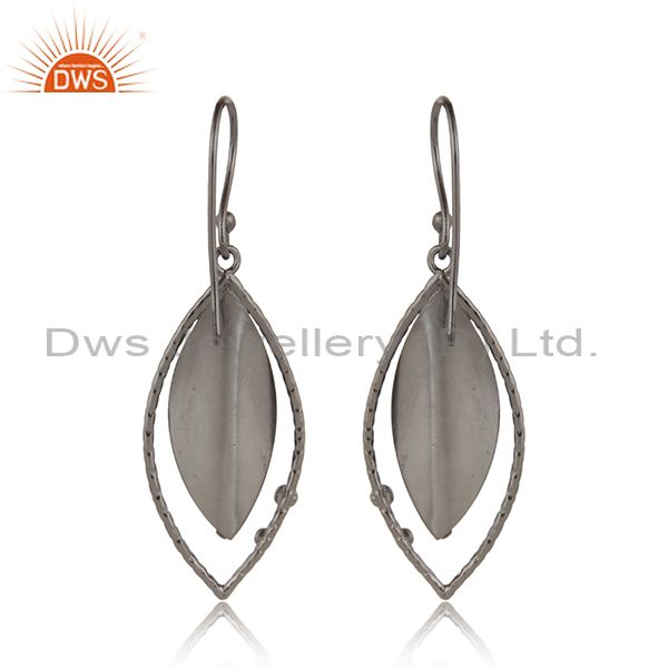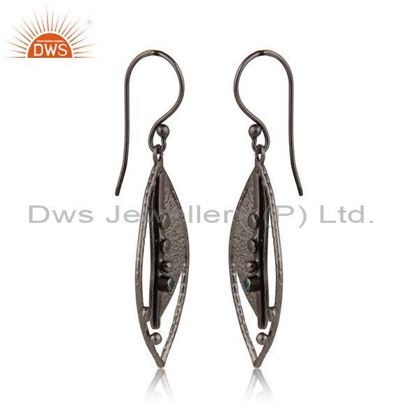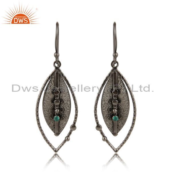 Texture Rhodium Plated Brass Green Onyx Gemstone Fashion Earrings