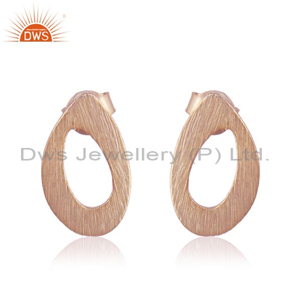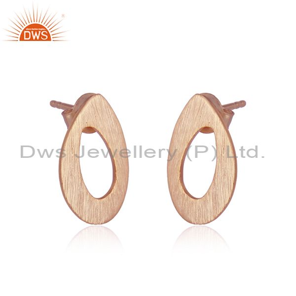 Texture Rose Gold Plated Designer Plain Silver Stud Earrings Jewelry