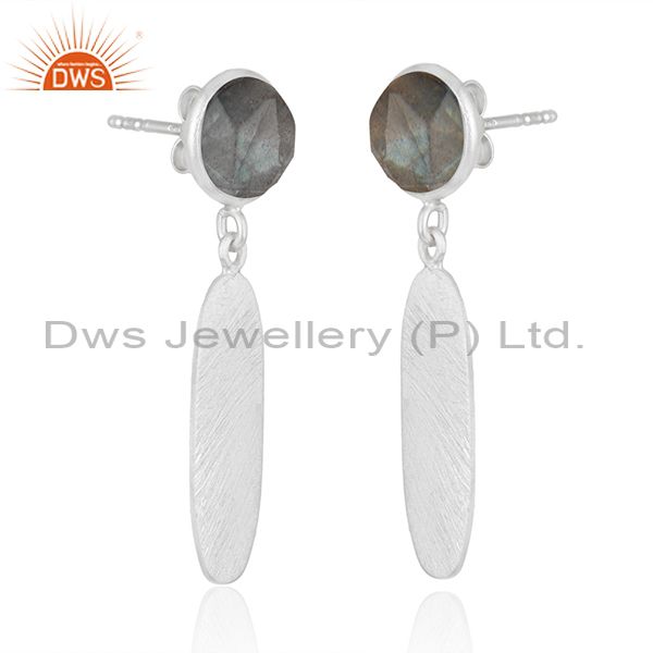 Texture Sterling Silver Natural Labradorite Gemstone Earrings Jewelry