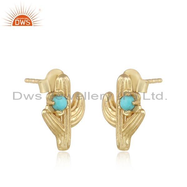 Textured Cactus Gold On Silver 925 Stud With Arizona Turquoise