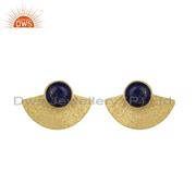 Textured Design Yellow Gold On Silver 925 Lapis Earrings