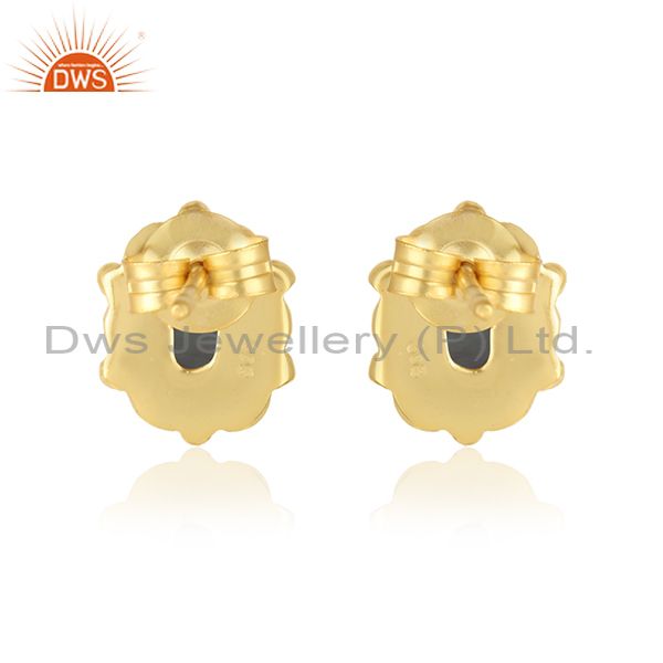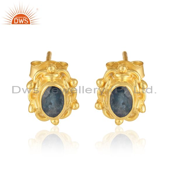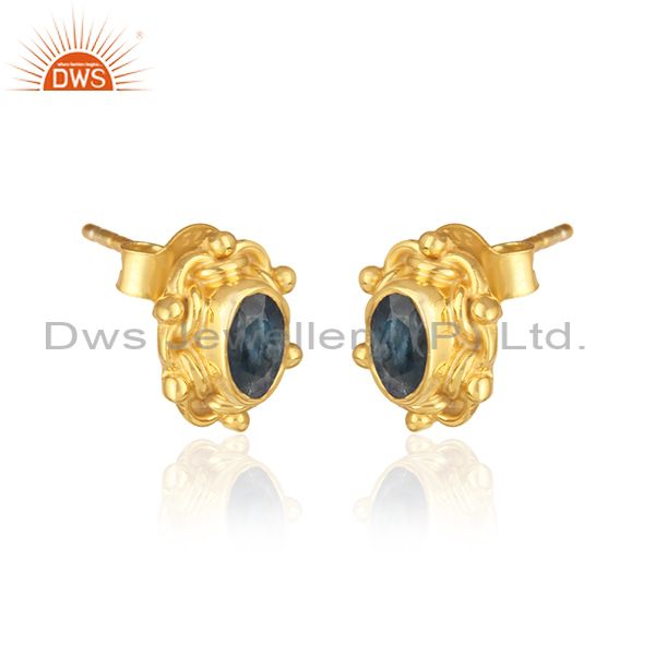 Textured Earring In Yellow Gold Over Silver With Blue Sapphire