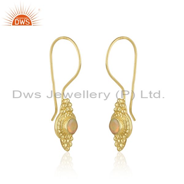 Textured Earring in Yellow Gold Over Silver With Ethiopian Opal