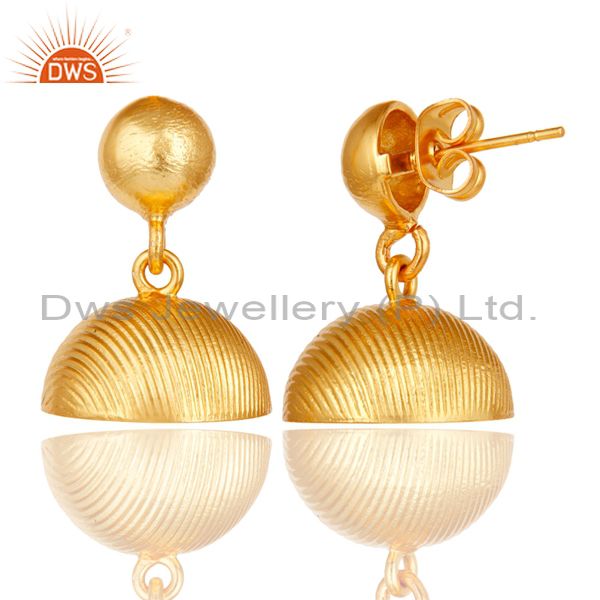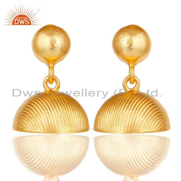 Textured Line Design Traditional Handmade 18k Gold Plated Brass Drops Earrings
