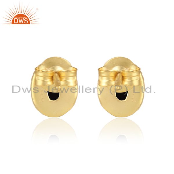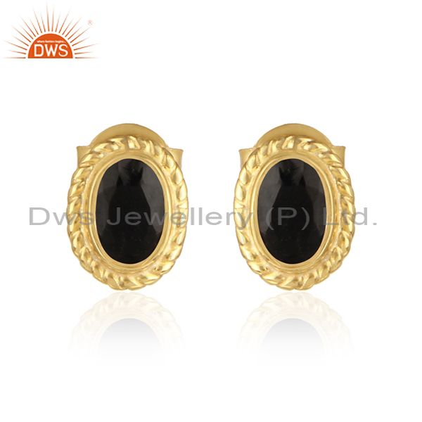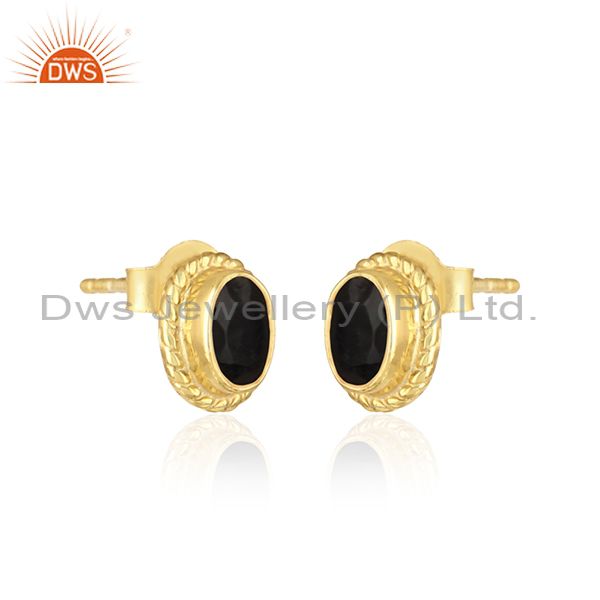 Textured Silver 925 Stud With Blck Onyx And Yellow Gold Plating