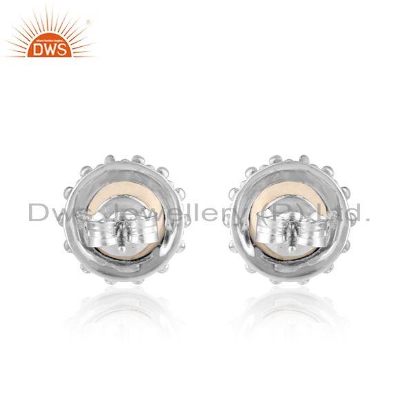 Textured Stud In Rhodium Plated Silver 925 With Pink Pearl