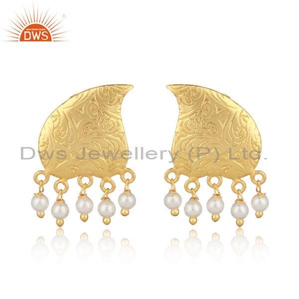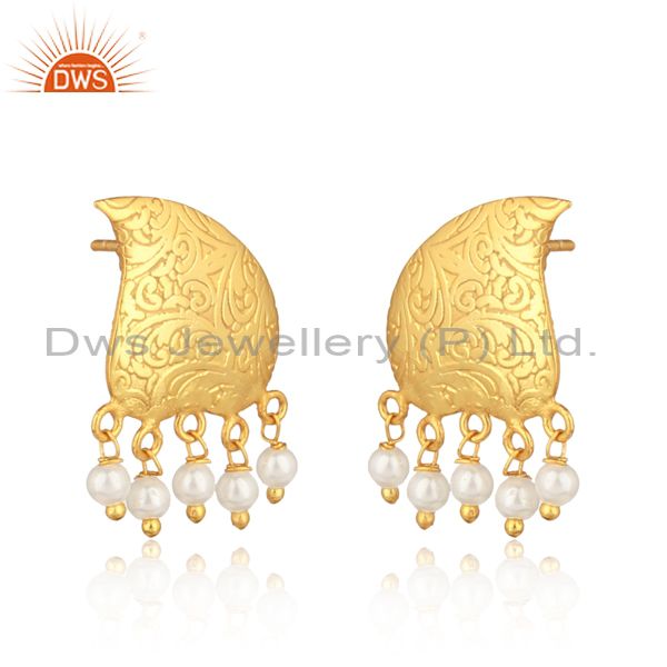 Textured Traditional Designer Gold on Fashion Earring with Pearls
