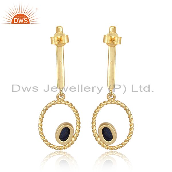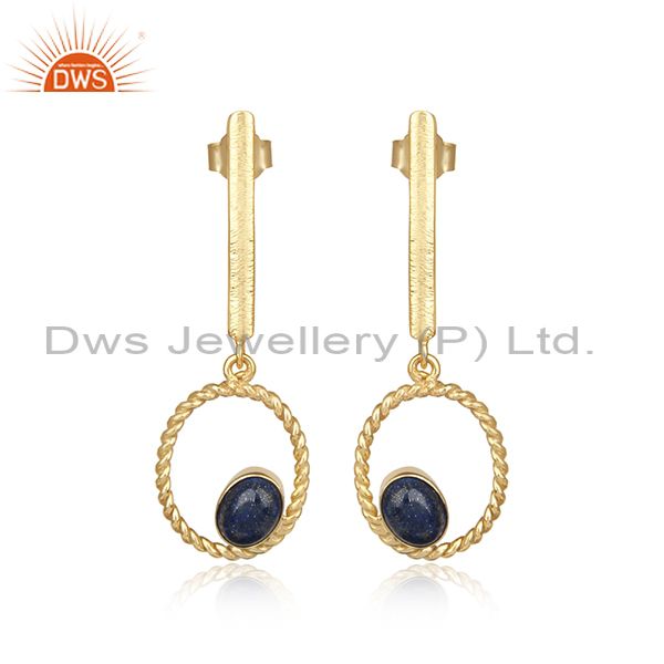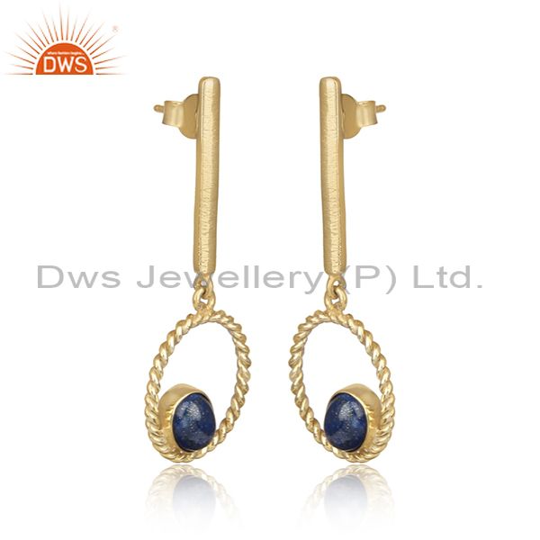 Textured Twisted Design Gold on Silver 925 Lapis Long Dangle