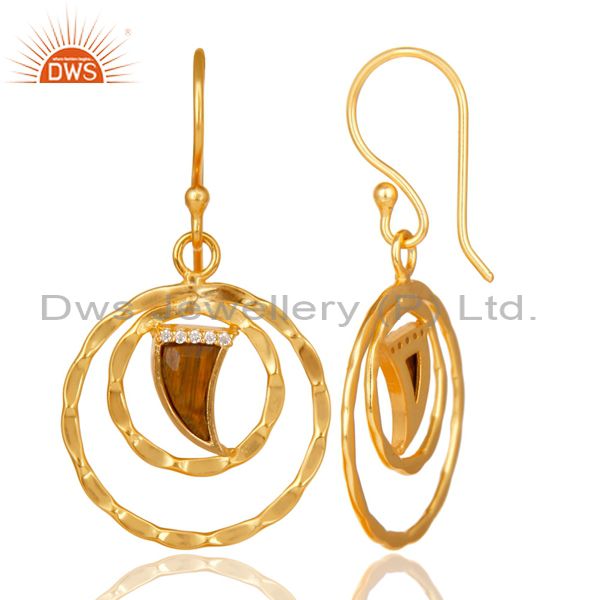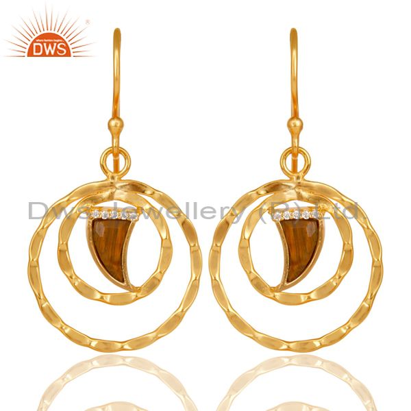 Tigereye Textured Hoops,Horn Hoops,Gold Plated 92.5 Silver Hoops Earring