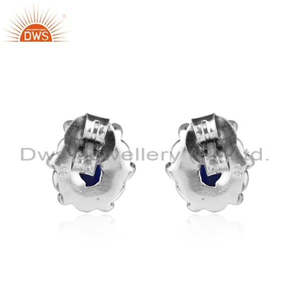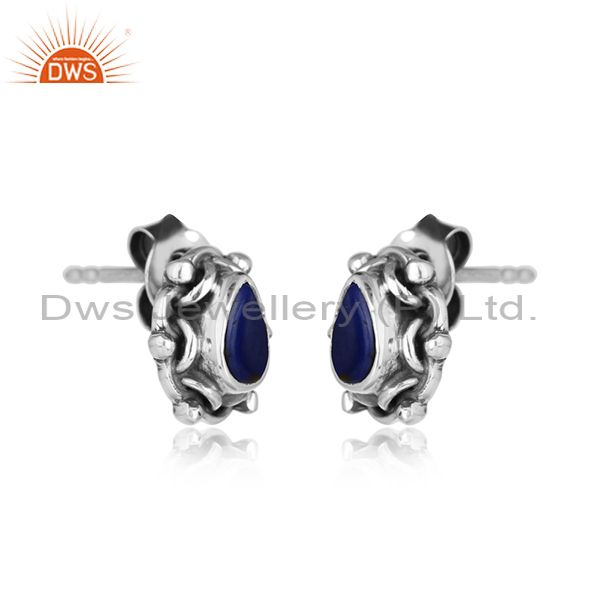 Tiny Lapis Lazuli Gemstone Oxidized 925 Silver Designer Stud Earring