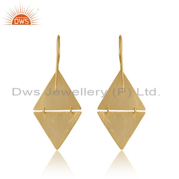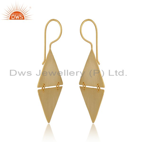Tow Triangle Design 18K Yellow Gold Plated Plain Silver Earrings