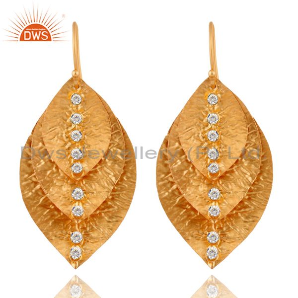 Tradiional Handmade 22K Yellow Gold Plated White Zirconia Brass Earrings Jewelry