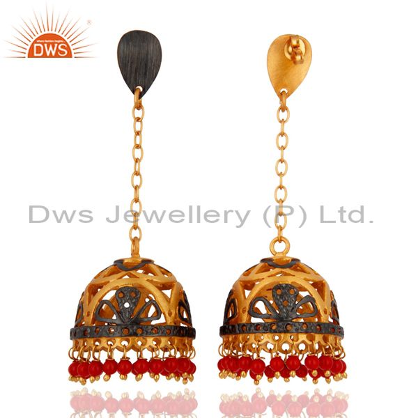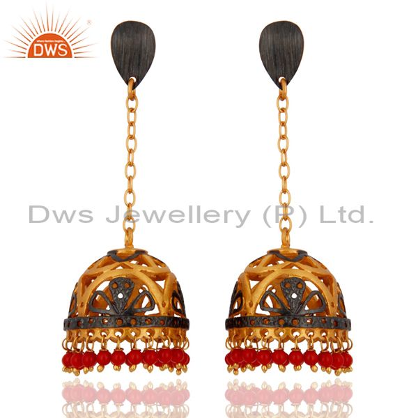 Traditional 18K Yellow Gold Plated Coral Gemstone Earrings Imitation Jewellery