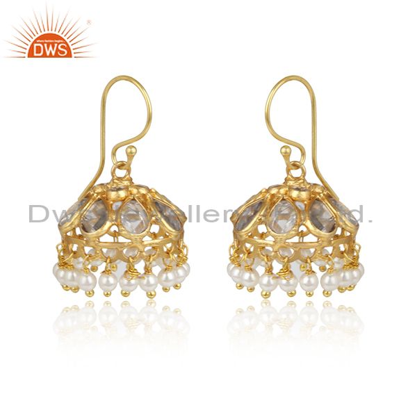 Traditional Design Yellow Gold On Silver Jhumka With Pearl Beads
