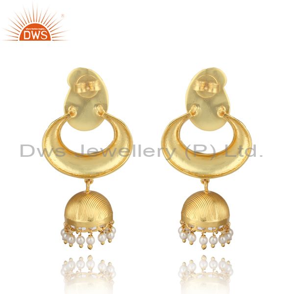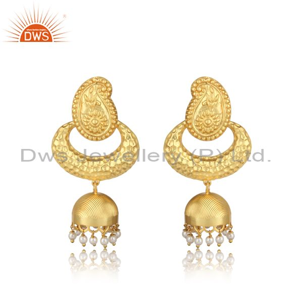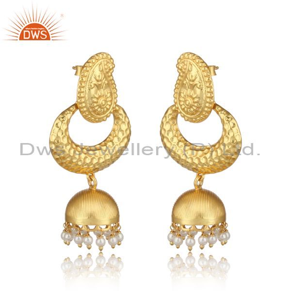 Traditional Designer Yellow Gold On Fashion Jhumka with Pearls