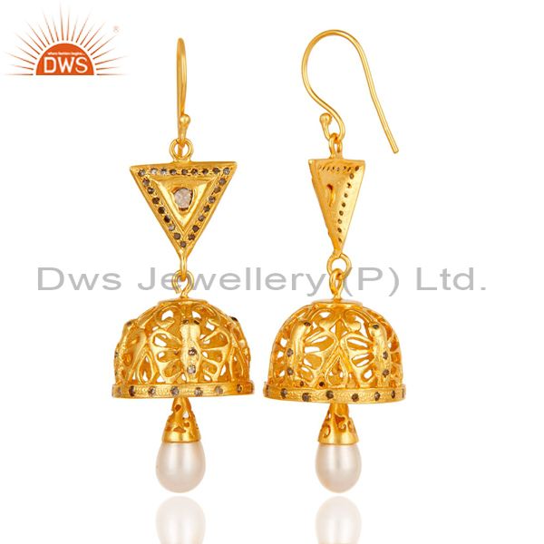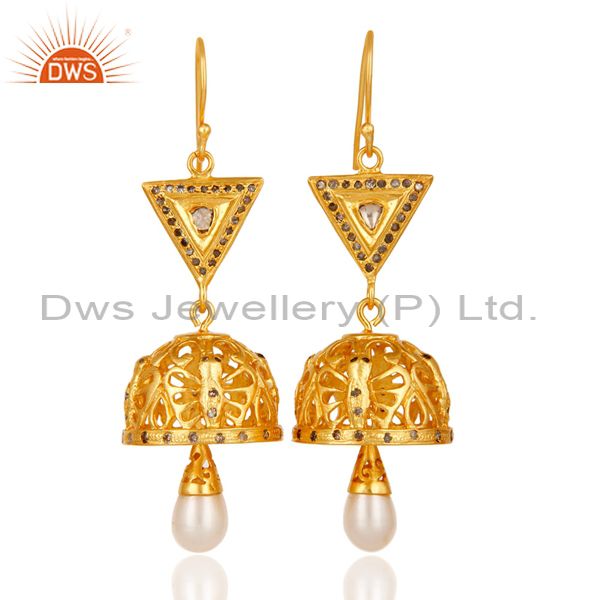 Traditional Diamond & Pearl Jhumka Earrings with 18k Gold Plated Sterling Silver