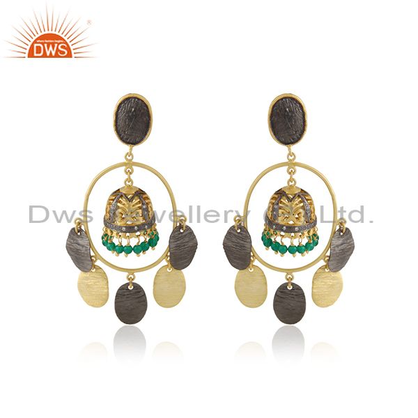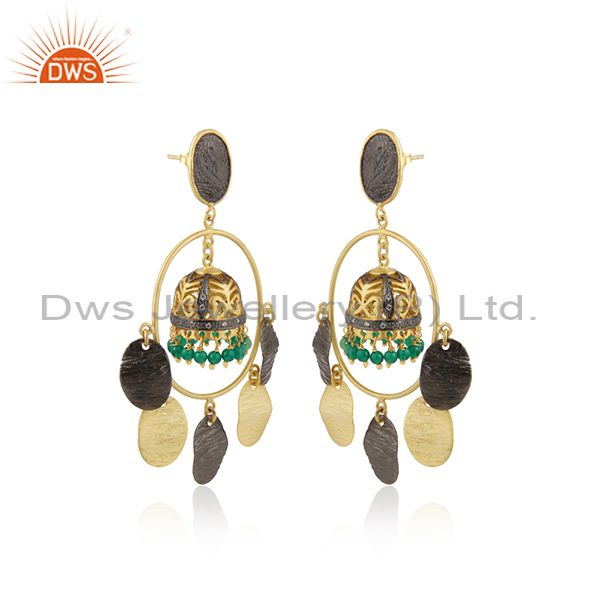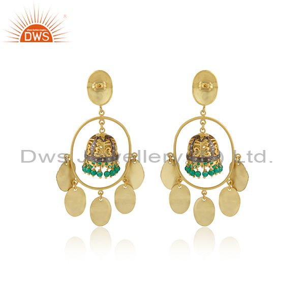 Traditional Gold Plated Jhumka Green Onyx CZ Brass Fashion Earrings