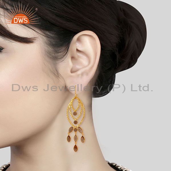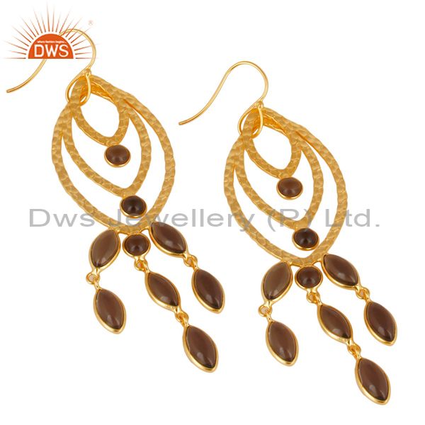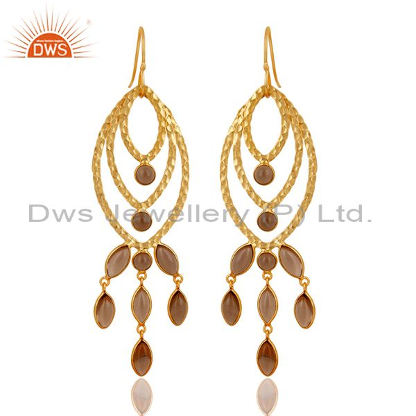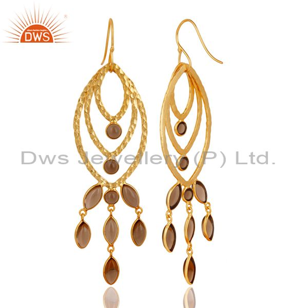 Traditional Handmade 14K Gold Plated Smokey Topaz Chandelier Brass Earrings