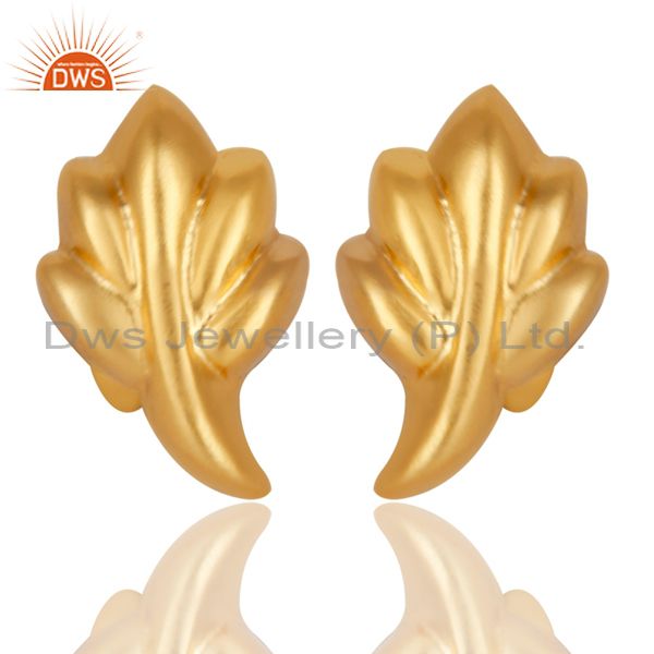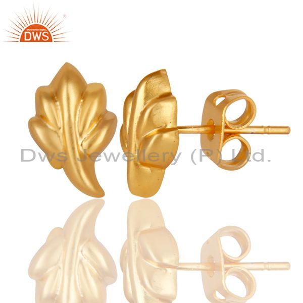 Traditional Handmade 14K Yellow Gold Plated Leaf Style Studs Earrings Jewelry