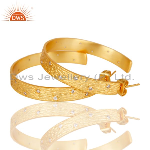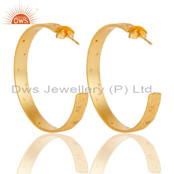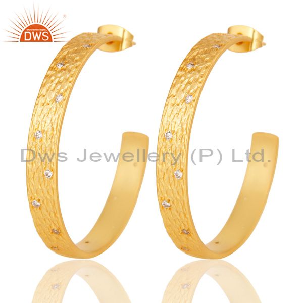 Traditional Handmade Hoop Design Brass Earrings With 18k Gold Plated & CZ