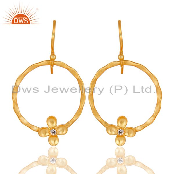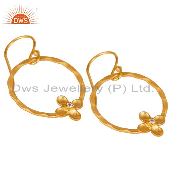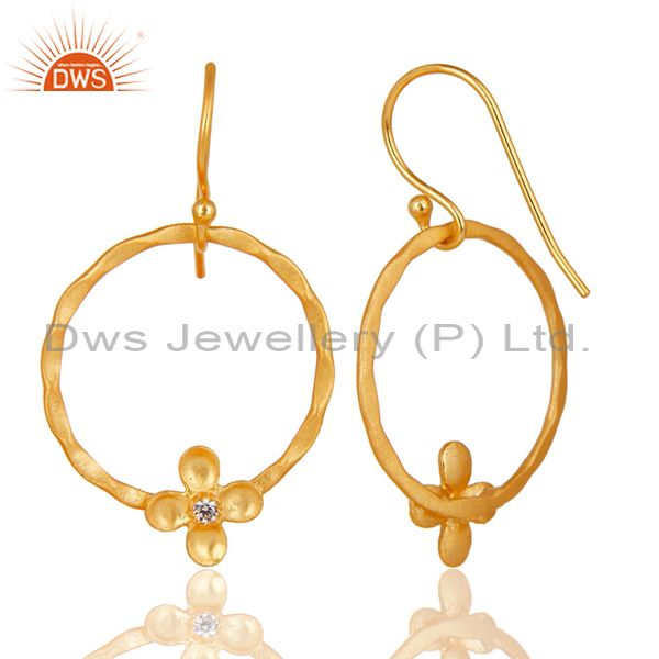 Traditional Handmade Round Flower Design Brass Earring Made In 14K Gold Plated